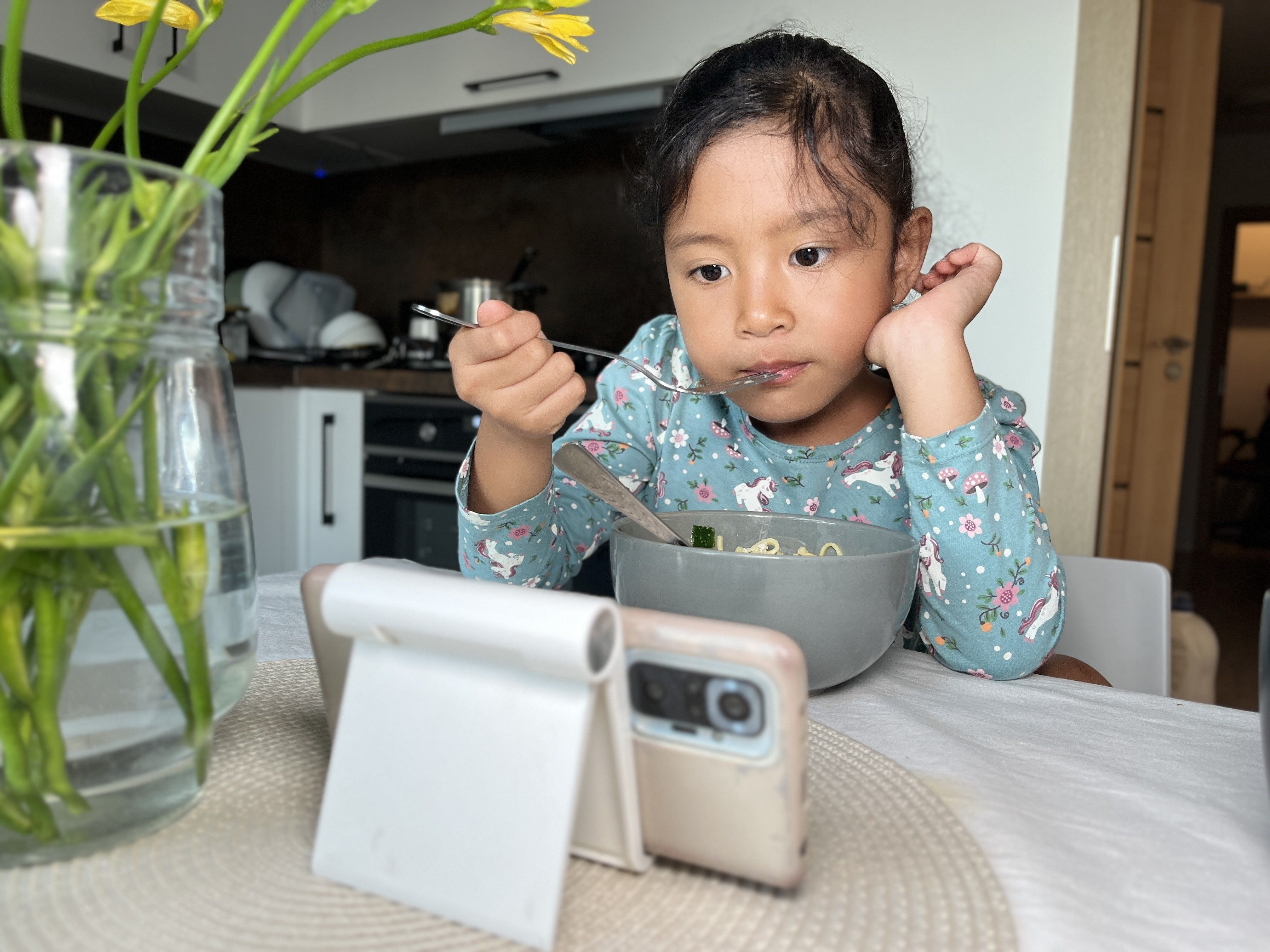 Không dỗ bé ăn bằng cách vừa ăn vừa xem điện thoại
