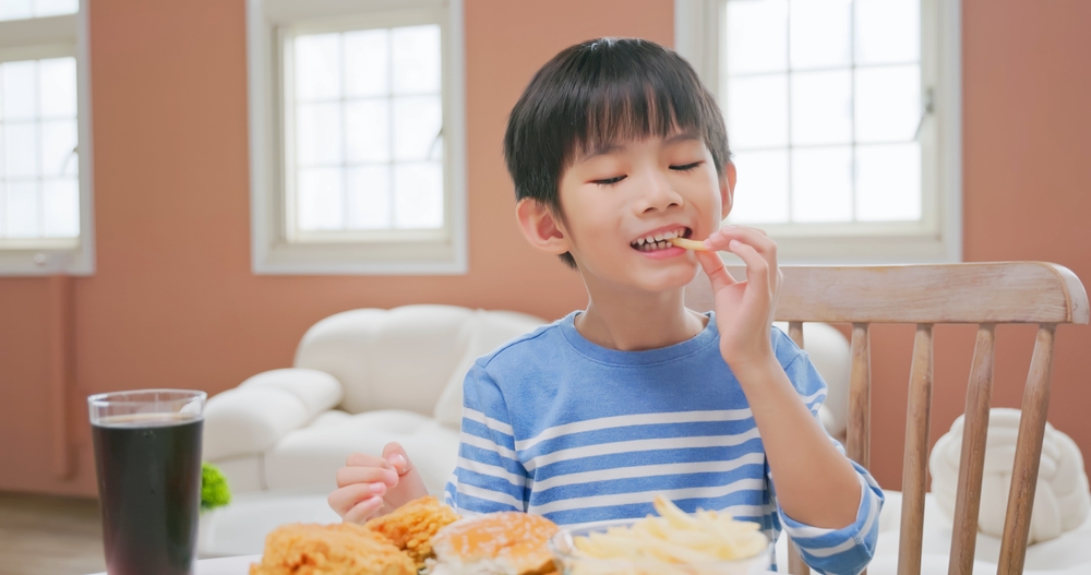 Hiện nay, nhiều trẻ em thích ăn đồ ăn nhanh, bánh kẹo, nước ngọt có ga hay các thực phẩm chế biến sẵn. Những thực phẩm này thường chứa nhiều đường, muối, chất béo bão hòa nhưng lại ít chất dinh dưỡng. Việc tiêu thụ thường xuyên có thể dẫn đến nguy cơ thừa cân, béo phì, tiểu đường, và các vấn đề về tim mạch sau này.