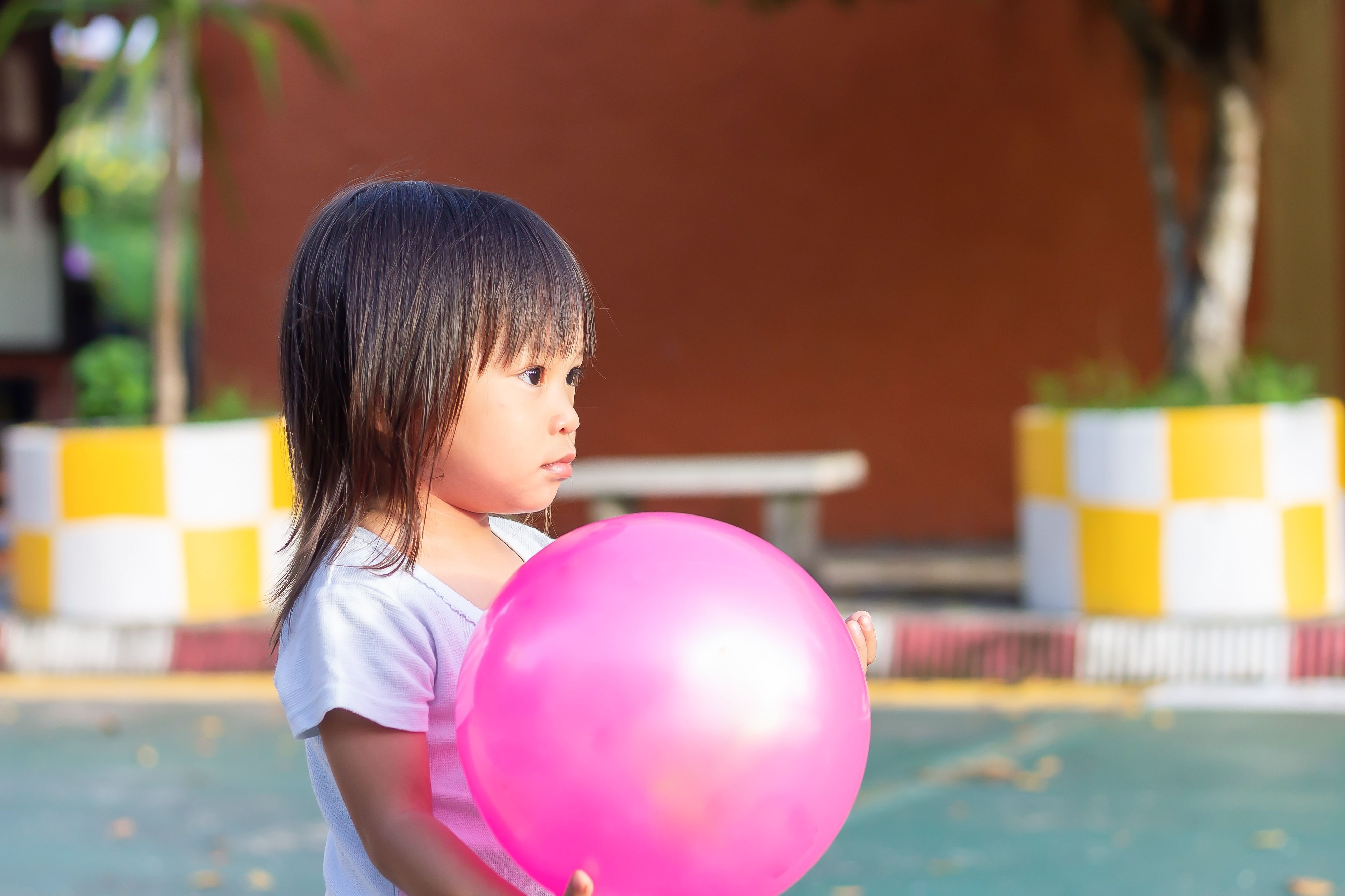 Tập vận động với bóng: Bé và bố mẹ dùng quả bóng và đá qua lại hoặc dùng tay tung bóng lên cao.