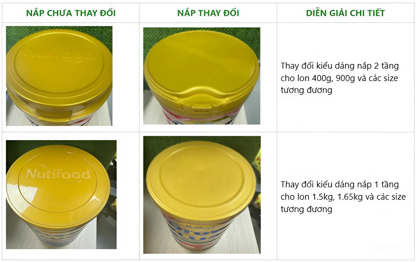 THAY ĐỔI BAO BÌ NẮP SẢN PHẨM SỮA BỘT NUTIFOOD